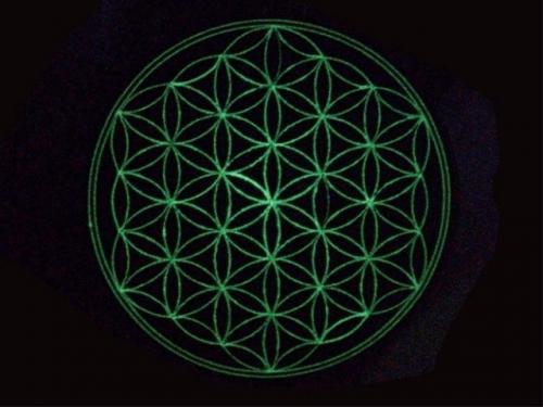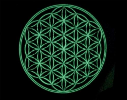 暗い場所では神聖幾何学模様が光って浮かび上がり、