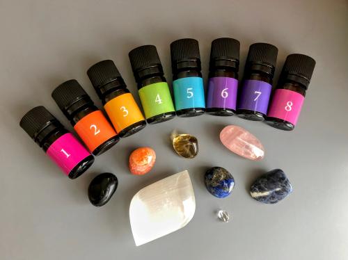 *「覚醒セット」は『「神聖幾何学次元」インナーガイド』の本文中のインナーワークに出てくるチャクラのための石とアロマのセットです。